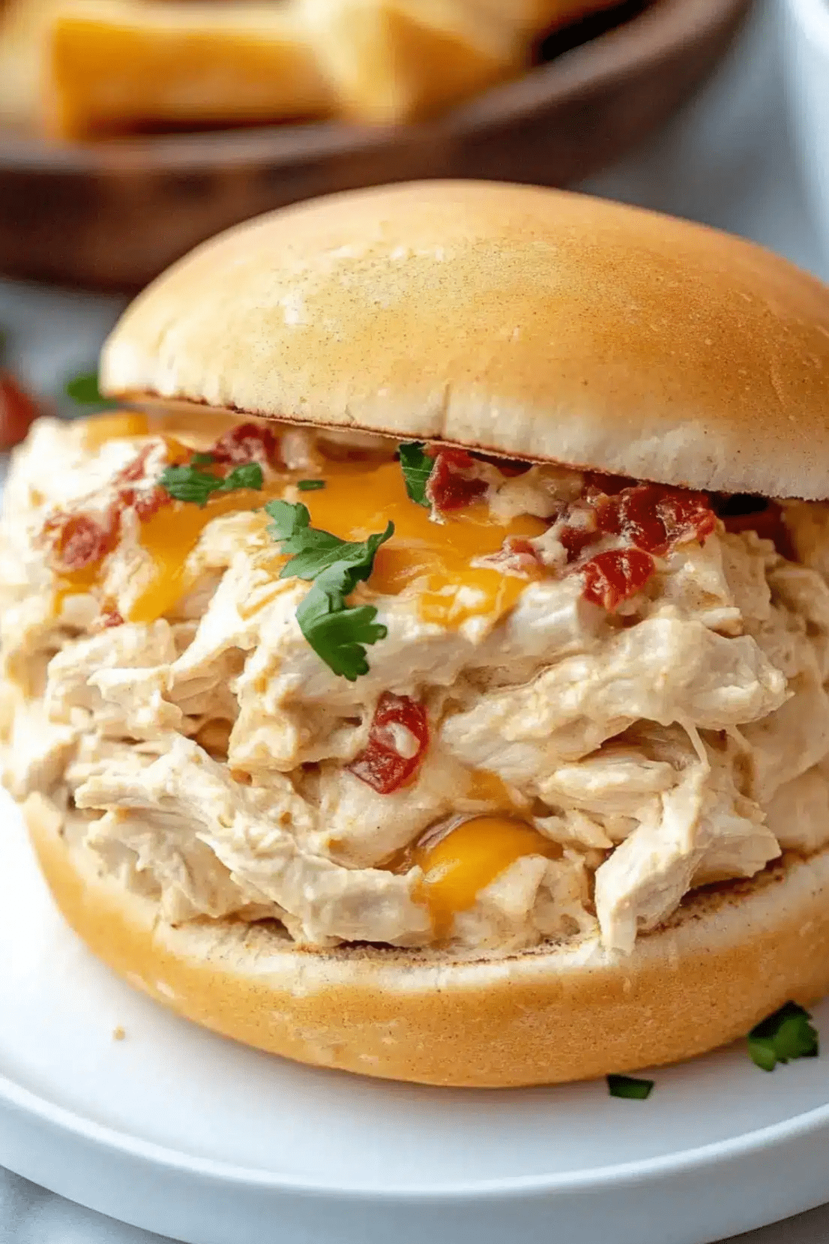 Step 6: Serve your creamy Crockpot Crack Chicken on buns, croissants, tortillas, or even lettuce wraps for a low-carb option. You can also serve it with veggie sticks for dipping if you prefer to keep it keto-friendly.